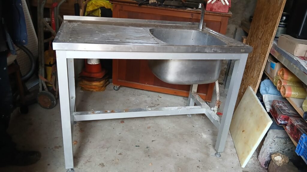 Évier inox sur châssis alu vendu en l’état (80 euros). A retirer sur place.